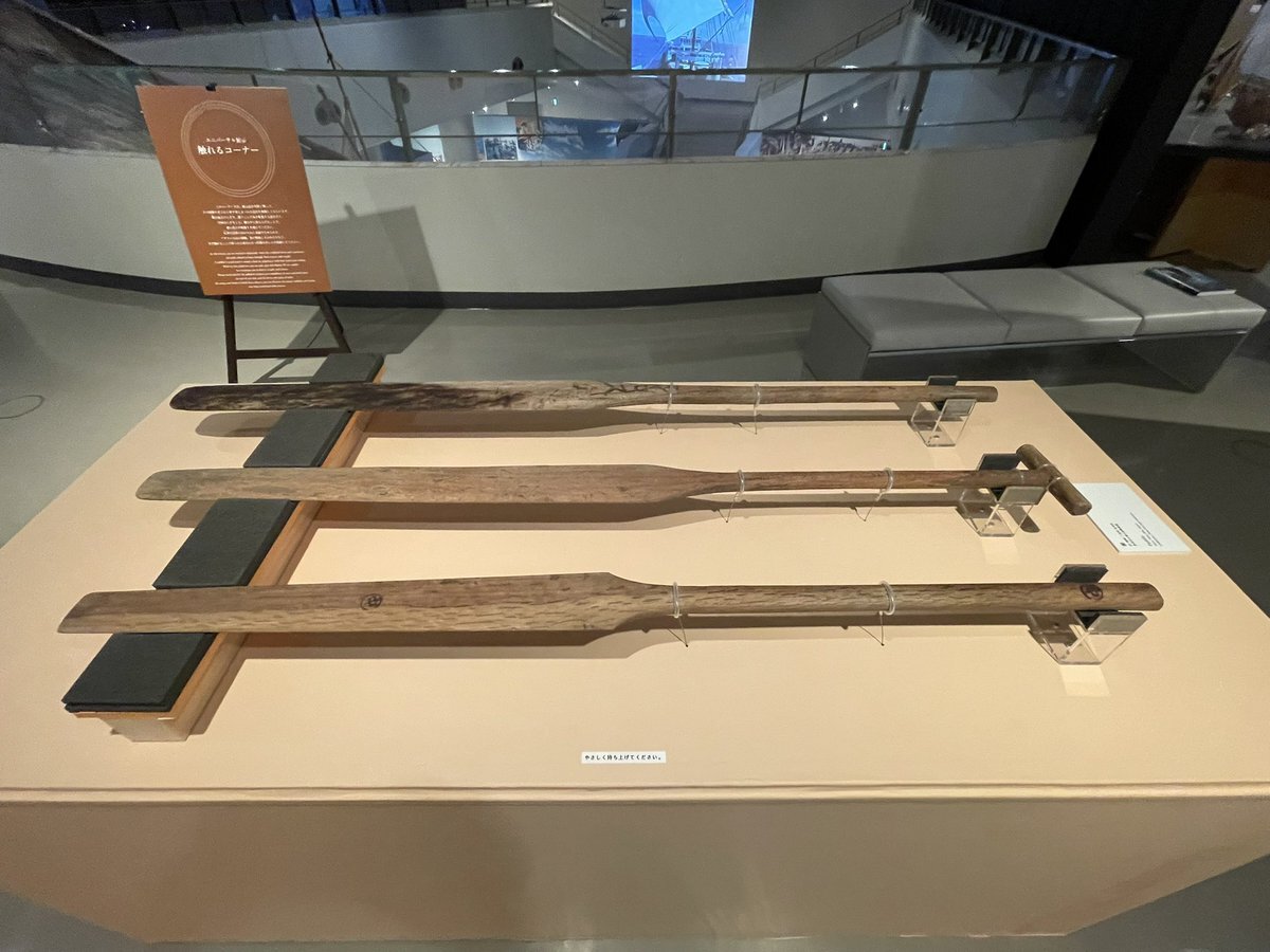パラパラと📮、見どころ多すぎて 舟の素材だけでも丸木舟、あし舟、樹皮、動物の皮革… 🦭アザラシの皮は2Fの触れるコーナーに出ていて、コレは想像超える触感でした 北限の生き物、凄いや 櫂もしっかり握ったし、貝斧が🪓硬いっ! 実感大切〜、ありがたい #舟と人類 #国立民族学博物館 pic.x.com/MFAZqKC8u5