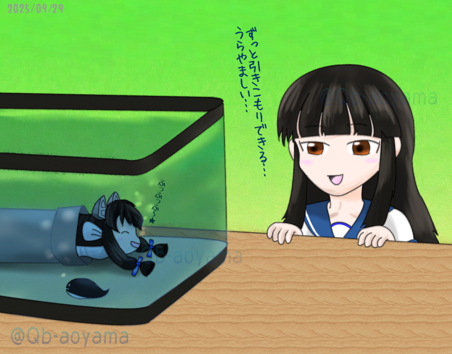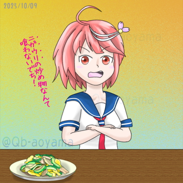 ワンドロチャレンジ(55分)。 そして #伊58進水日 にしていつもの #艦娘達が何か喰う絵を載せよう シリーズ。同族嫌悪?(違) 余談だけど、親父はあれを「なんでニガウリって言わないんだ!」と頑なに申しておりますw #艦これ版真剣お絵描き60分一本勝負 #艦これ版真剣お絵描き60分一本勝負_20251009 pic.x.com/0UYklEQQ09