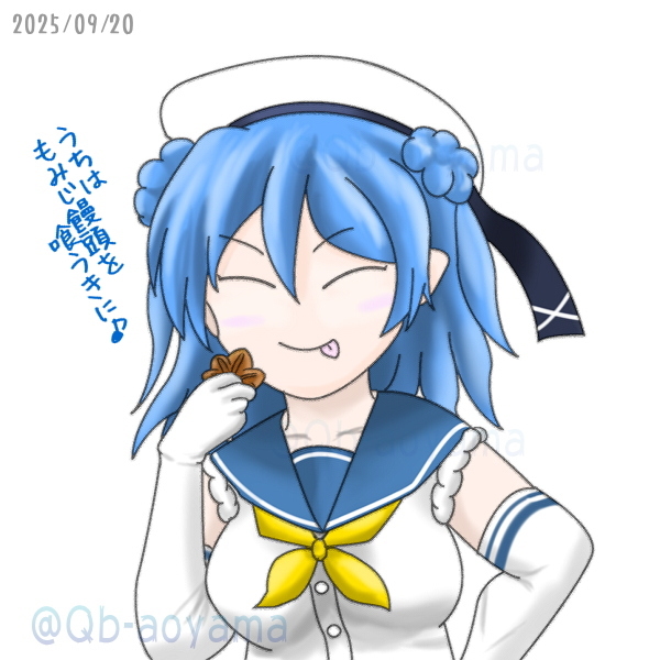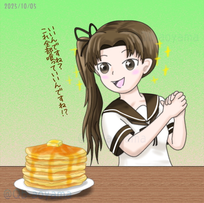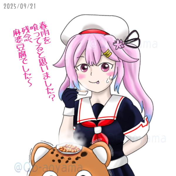 ワンドロチャレンジ(50分)。 #春雨進水日 にしていつもの #艦娘達が何か喰う絵を載せよう シリーズ。 熱いものを頭に載せるのはやめようね! #艦これ版真剣お絵描き60分一本勝負 #艦これ版真剣お絵描き60分一本勝負_20250921 #艦これ #春雨 pic.x.com/OQbMh9iqNp