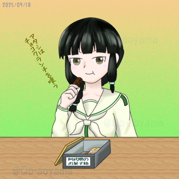 ワンドロチャレンジ(65分…)。 #綾波進水日 に合わせて #艦娘達が何か喰う絵を載せよう で。 某所を見たら、彼女に合う食い物はこれしかないでしょう(笑) #艦これ版真剣お絵描き60分一本勝負 #艦これ版真剣お絵描き60分一本勝負_20251005 #綾波 pic.x.com/EuZA6f9Sg0