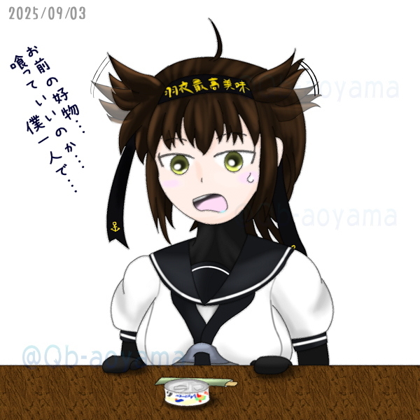 ワンドロチャレンジ(62分…)。 野分を描く何かを考えてたらふとこちらが浮かんでしまった、すまぬ野分。 シーチキンは大好物でございますw #艦これ版真剣お絵描き60分一本勝負 #艦これ版真剣お絵描き60分一本勝負_20250917 #艦これ #初月 #艦娘達が何か喰う絵を載せよう pic.x.com/xu1ZXckbBn