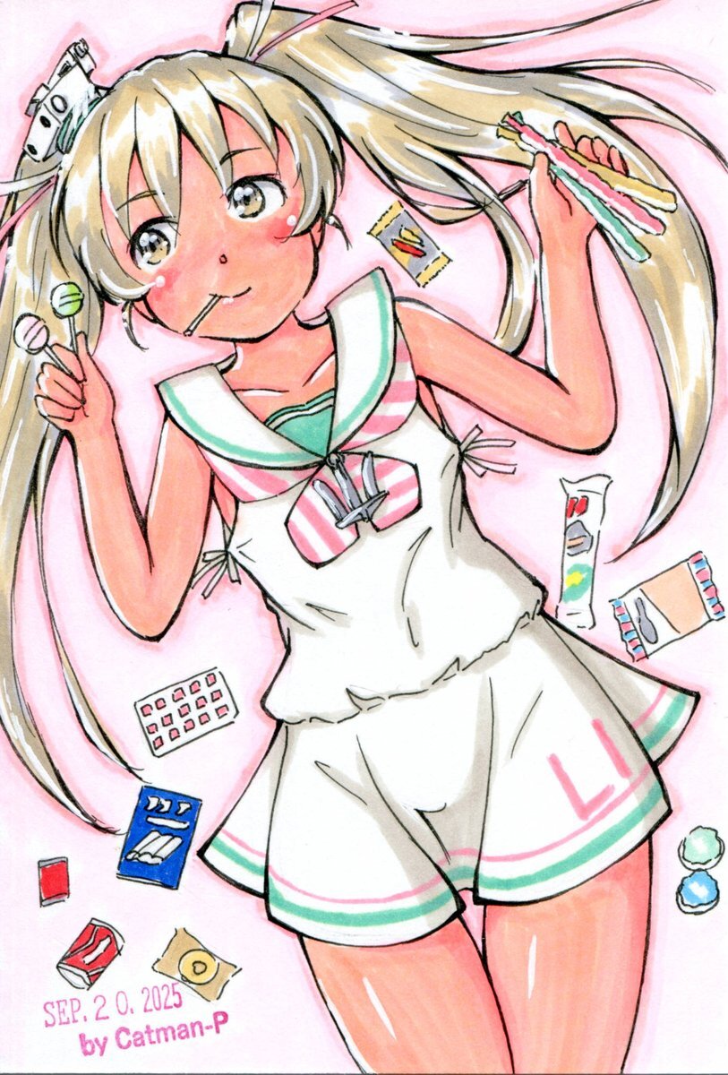 ワンドロチャレンジ(54分)。そしていつもの #艦娘達が何か喰う絵を載せよう シリーズ。 お好み焼きと悩んだけど、ワンドロで描きやすい方でw #艦これ版真剣お絵描き60分一本勝負 #艦これ版真剣お絵描き60分一本勝負_20250920 #艦これ #浦風 pic.x.com/3bc7KTRBLb