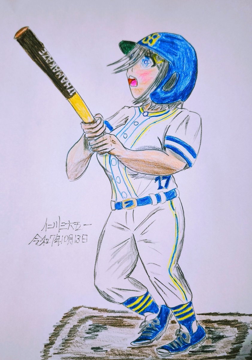 レフト上空に上がった自分の打球を見る浜風さん(似てない😂) 10月13日がスポーツの日だったからではなく、元々浜風さんを野球選手にして描く事が多いので #艦これ #浜風 #艦これ版深夜の真剣お絵描き60分一本勝負 #艦これ版真剣お絵描き60分一本勝負_20251013 pic.x.com/eu0s7Ypy0J