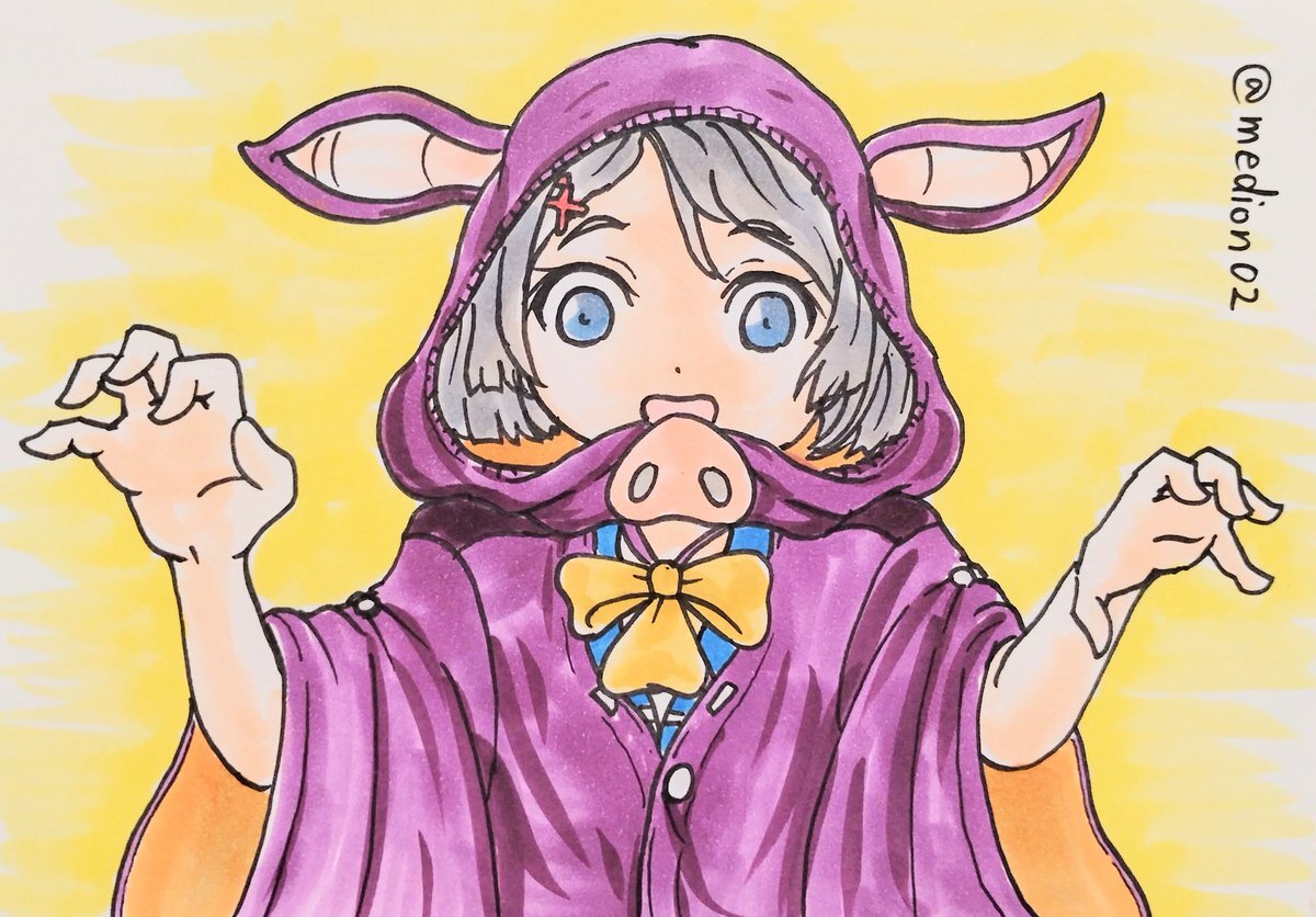 #第三〇号海防艦 #みと #艦これ版深夜の真剣お絵描き60分一本勝負 #艦これ版真剣お絵描き60分一本勝負_20251013 みとちゃんのハロウィンコス 豚さんモチーフでも可愛いく着こなす pic.x.com/JLsUZyKuiN