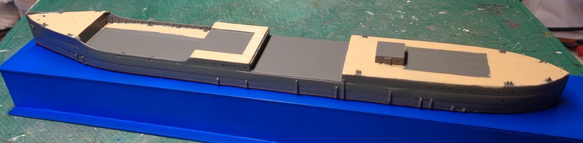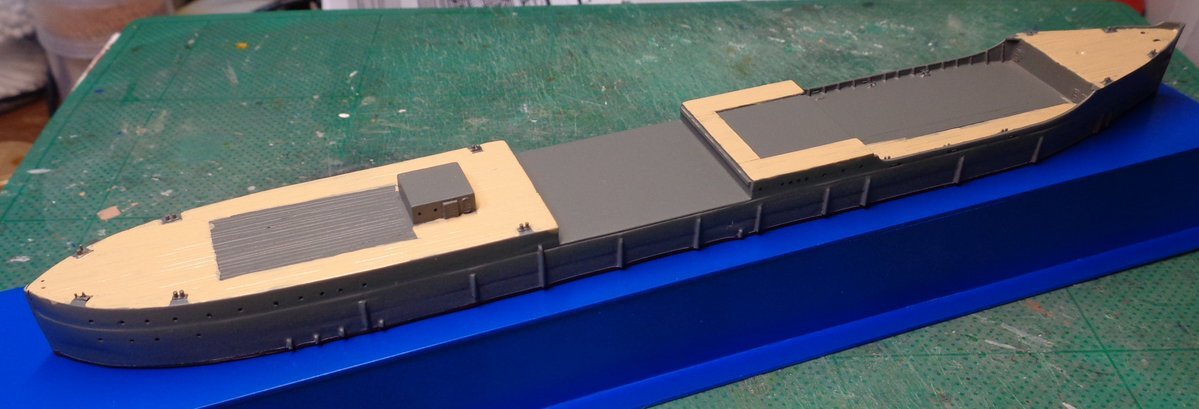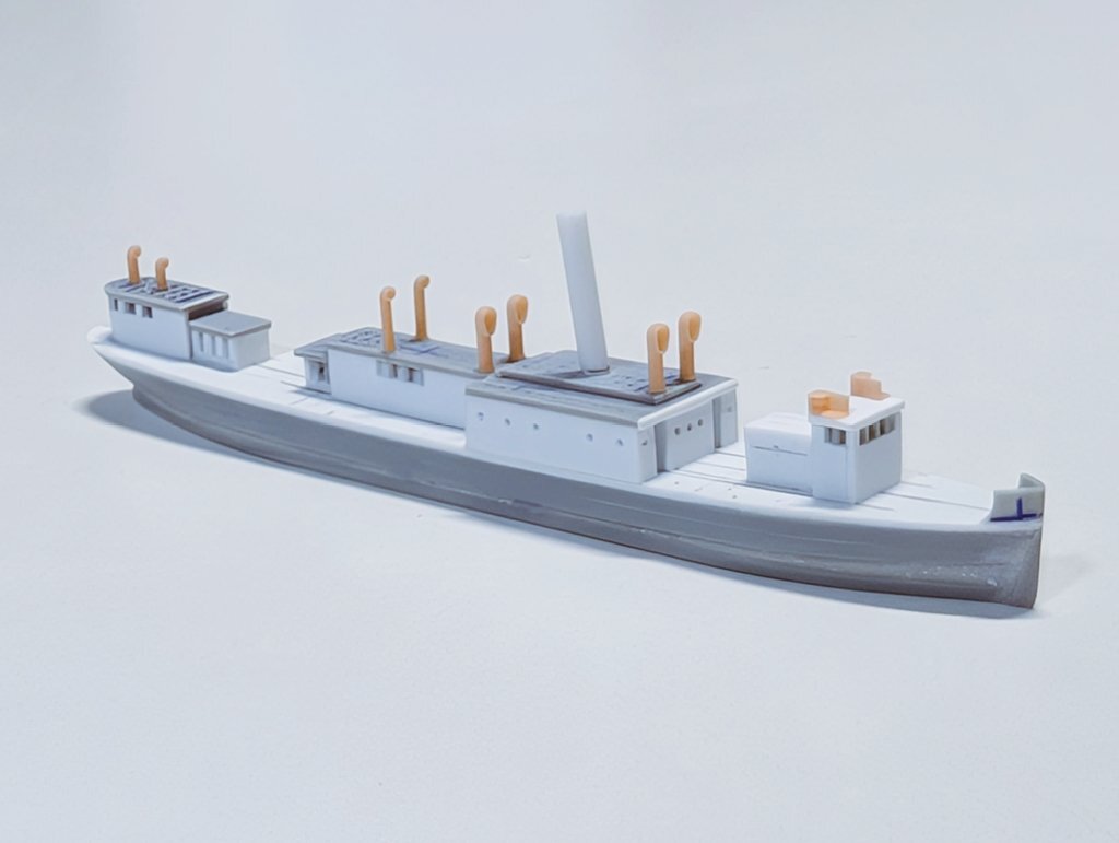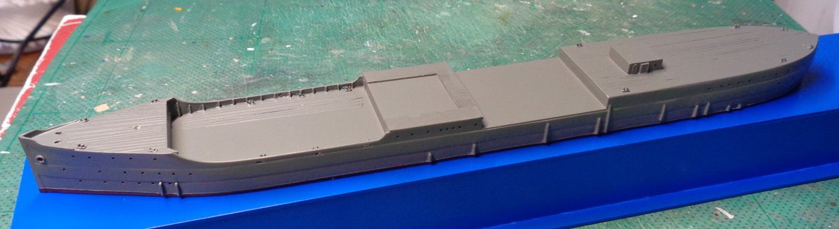 水上機母艦 神威 外板を塗装しました。 やはり艏、特に喫水線部のカーブの違いが目につきます。 実艦はいかにもタンカーと言ったカーブですが、キットは直線どころかインカーブに近い印象です。 今回は課題作で工期ありきですので、このまま進めます。 #艦船模型 #水上機母艦 #神威 pic.x.com/uRXLEn9Irr