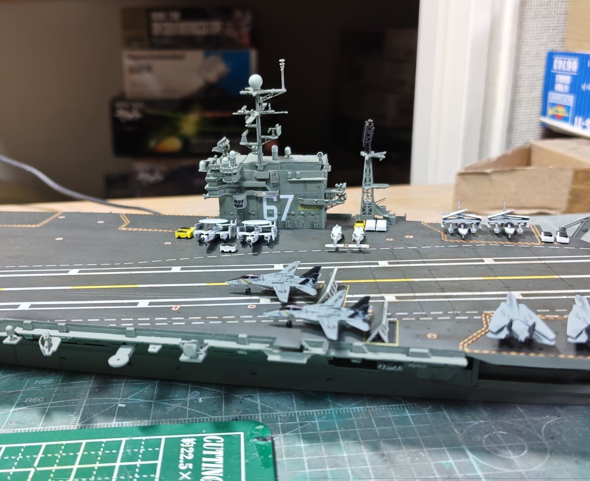 #艦船模型 #プラモデル トランペッター1/700ジョンFケネディ製作!仕事が忙しく製作時間がなかなか取れず最近は進みが遅いです🥲トムキャット2機のみ完成です… pic.x.com/eAieKJepKS