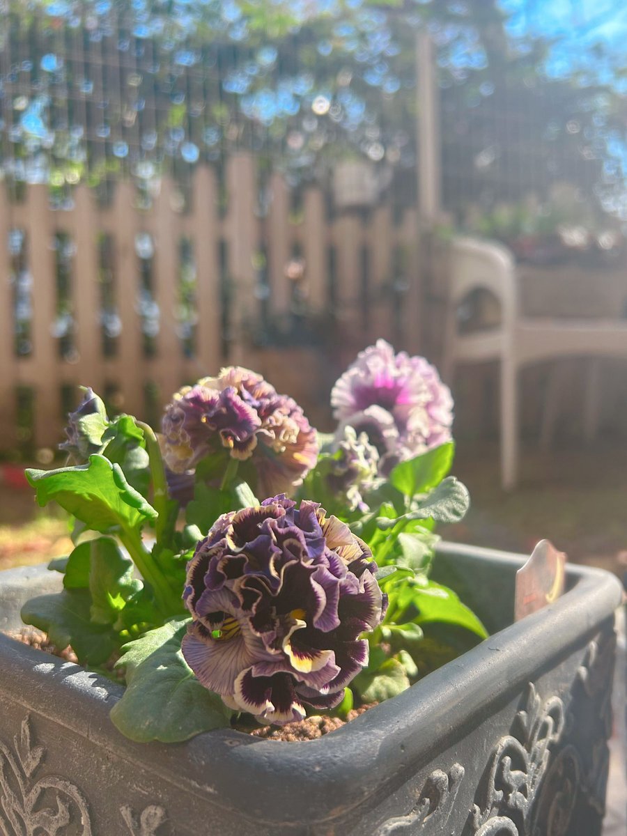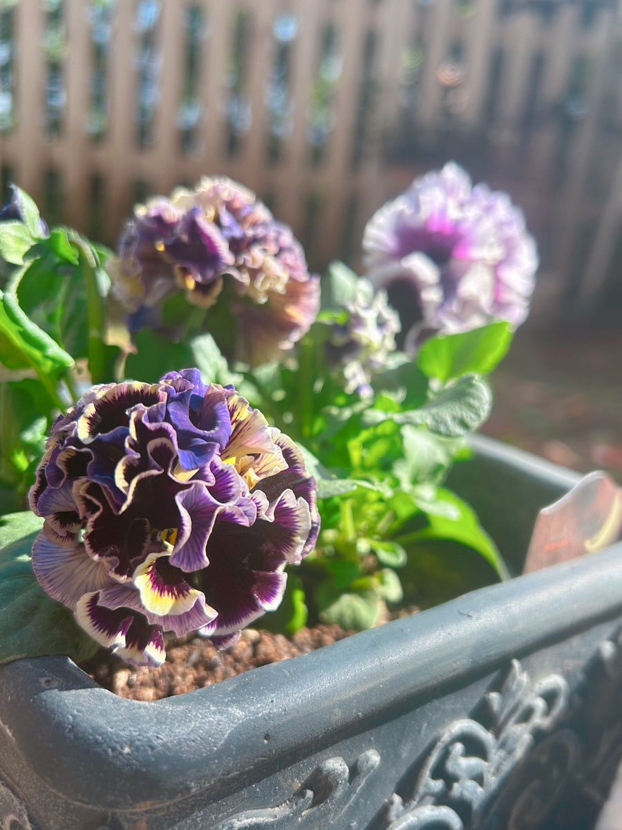 良い天気です 朝日を浴びて神々しい パンジー ドラキュラ 今日も楽しいガーデニングを♪ #花のある暮らし #庭のある暮らし #ガーデニング pic.x.com/G5nOP8Jakb