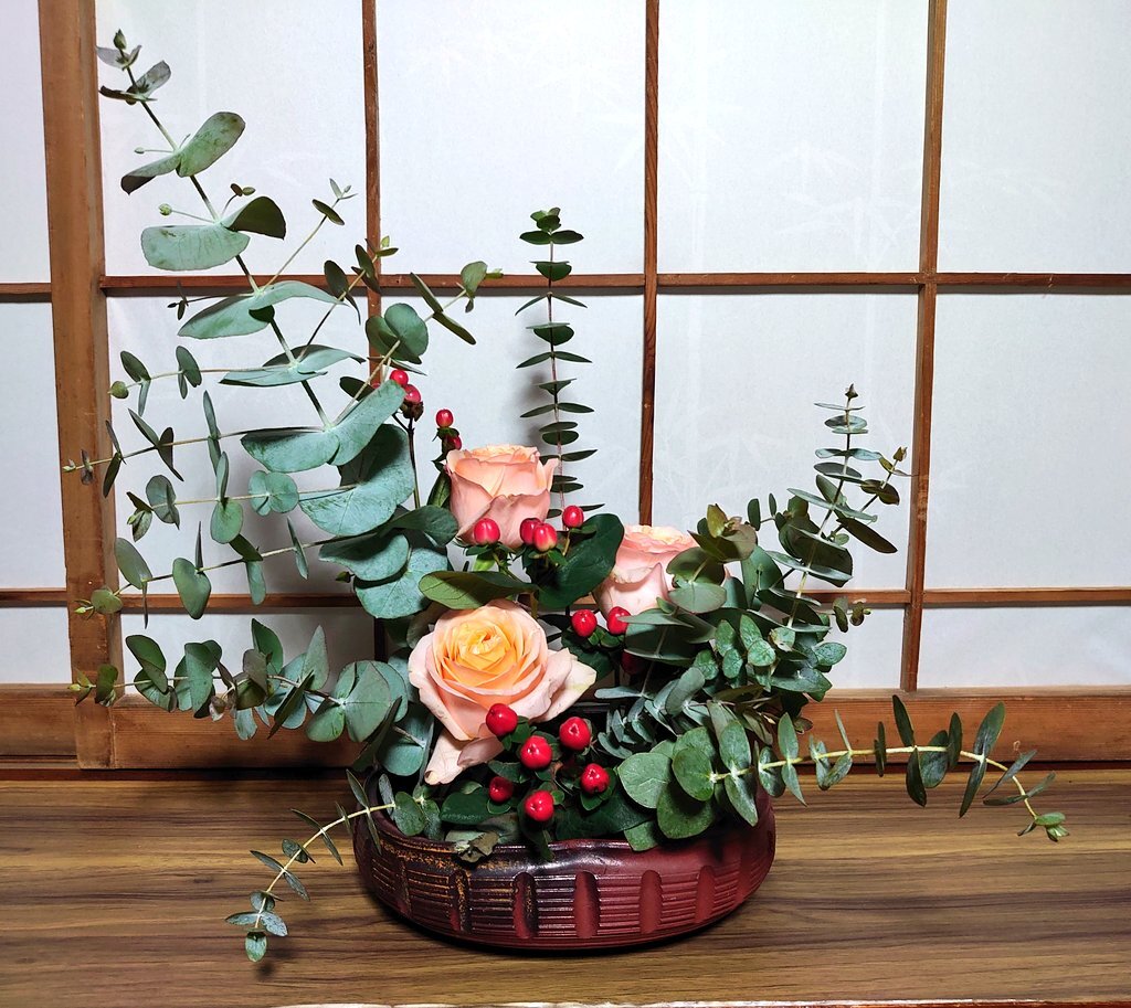2025.11.23生花 ヒペリカム ユーカリ バラ 半年ぶりのお稽古でした🌹ムズカシイ やはり花は良いですね😊 #ikebana #古流 #花のある暮らし pic.x.com/uZa6s1bSSB