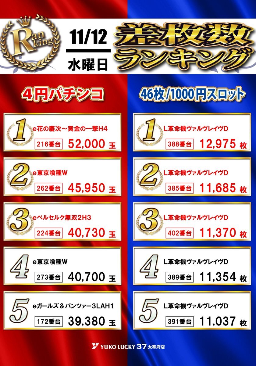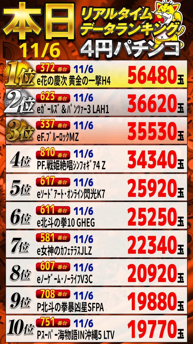 11月4日(火)パチンコRANK 🕵️🕵️GENESIS&京橋会館🦹♀️🦹♀️ #パチンコ #スロット #関西トップランカー #出玉ランキング #大阪 #京橋 x.com/gene_kyobashi/…
