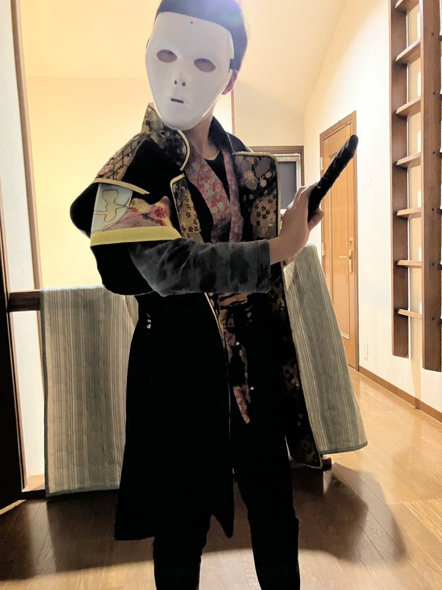 ハッピーハロウィン?🎃 息子にハロウィンだからコスプレする?(陣羽織しかない)息子は内着を選ぶw内着に合う #奇染屋 さんが作った陣羽織を推すも黒いのが良いって🤣母はフルコスさせたかった🌸#ローレンイロアス 殿の配信良い勝負で御座った✨燦然もろろろろ6000も聴けた🥰 #花の慶次黄金の一撃 pic.x.com/LiJwmYfpoZ