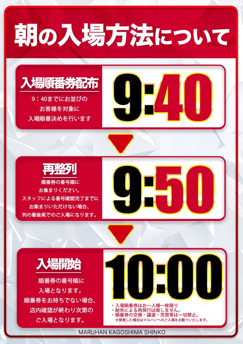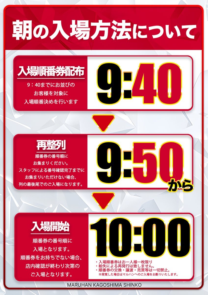 おはようございます! 11月9日(日)10時開店! 🔥最新機種🔥 一挙15機種92台導入済‼️ #花の慶次~黄金の一撃 #革命期ヴァルヴレイヴ2 #リゼロseason2 【増台】計20台 #ネオアイムジャグラー 【増台】計47台 週末もマルハンへ♪ ご来店お待ちしております! #マルハン #鹿児島マルハン pic.x.com/1vaSkj6r3b
