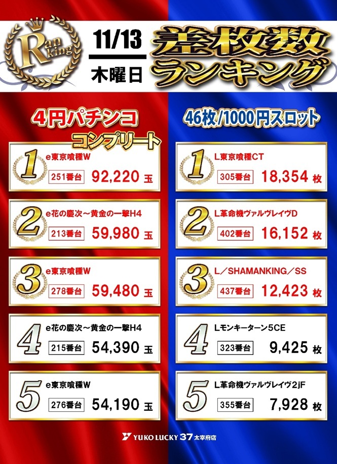 🔥13日出玉ランキング🔥 ✅#スロット 🥇1位 #東京喰種 🥈2位 #ヴァルヴレイヴ 🥉3位 #SHAMANKING ✅#パチンコ 🥇1位 #スマパチ #東京喰種㊗コンプリート㊗ 🥈2位 #スマパチ #花の慶次~黄金の一撃 🥉3位 #スマパチ #東京喰種 pic.x.com/XMM0GVrtvM