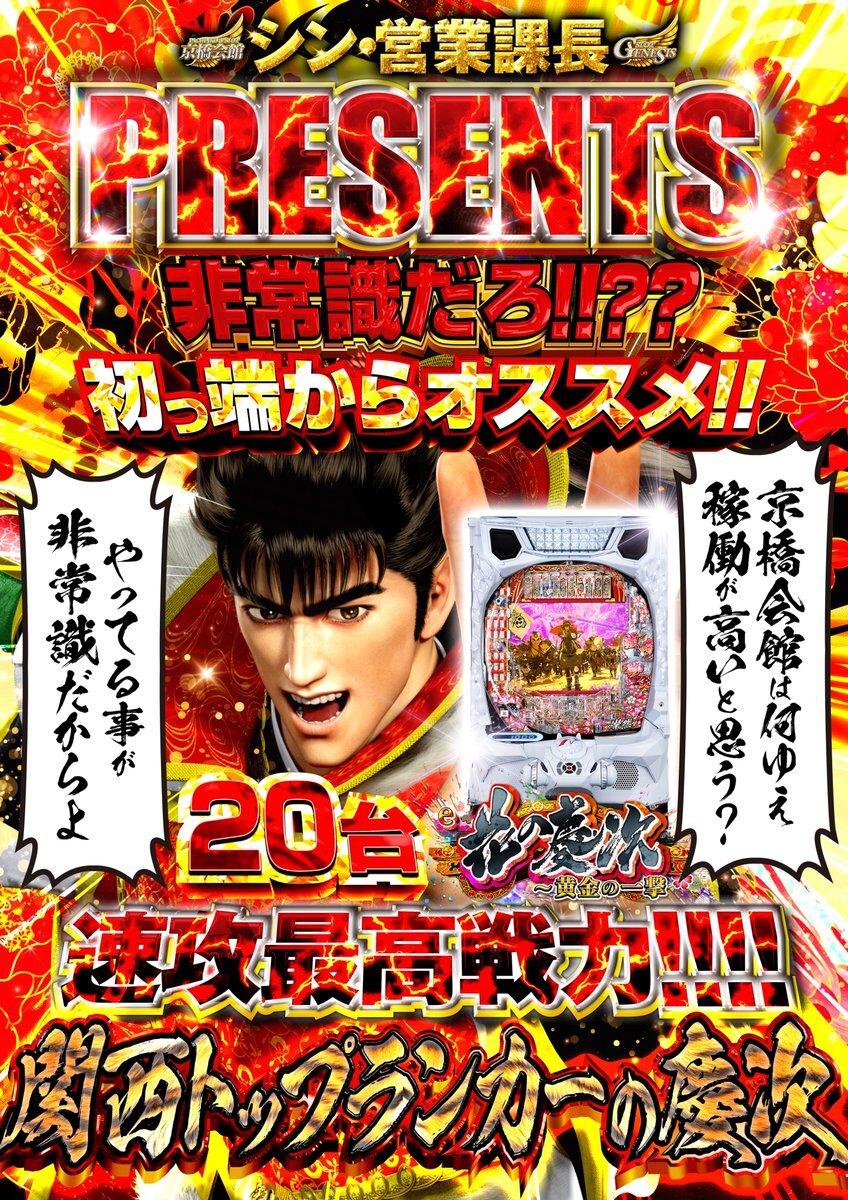 ※土日も【オススメ】 #ヴァルヴレイヴ2 23台 #花の慶次~黄金の一撃 20台 導入後””初の週末”” 当店は週末も””稼働率重視”” 関西トップランカーは””非常識”” 週末をお楽しみください👍 🌈11/8(土)🌈 ⏰整理券9:40⏰ #慶次 #ヴァルヴレイヴ #日本トップランカー への挑戦 #稼働率 pic.x.com/I9iAwl3UzE x.com/gene_kyobashi/…