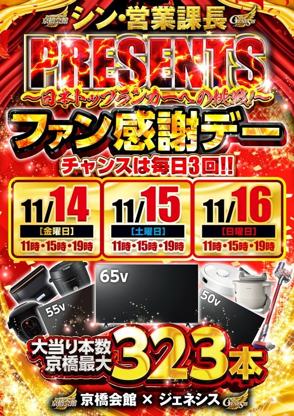 昨日も #ヴァルヴレイヴ2 から 10000枚OVER🤩 #花の慶次~黄金の一撃 から 50000発OVER2⃣台も🤩 さあ、本日🔥週末×16日🔥 ””共闘””しようじゃないか😏 🔥パチンコ&スロット🔥 ⏰※整理券9:30⏰ そして! 本日、#ファン感 最終日🎁 まだまだ””豪華賞品””残ってます🤩 pic.x.com/ZBhX9xRIDM x.com/gene_kyobashi/…