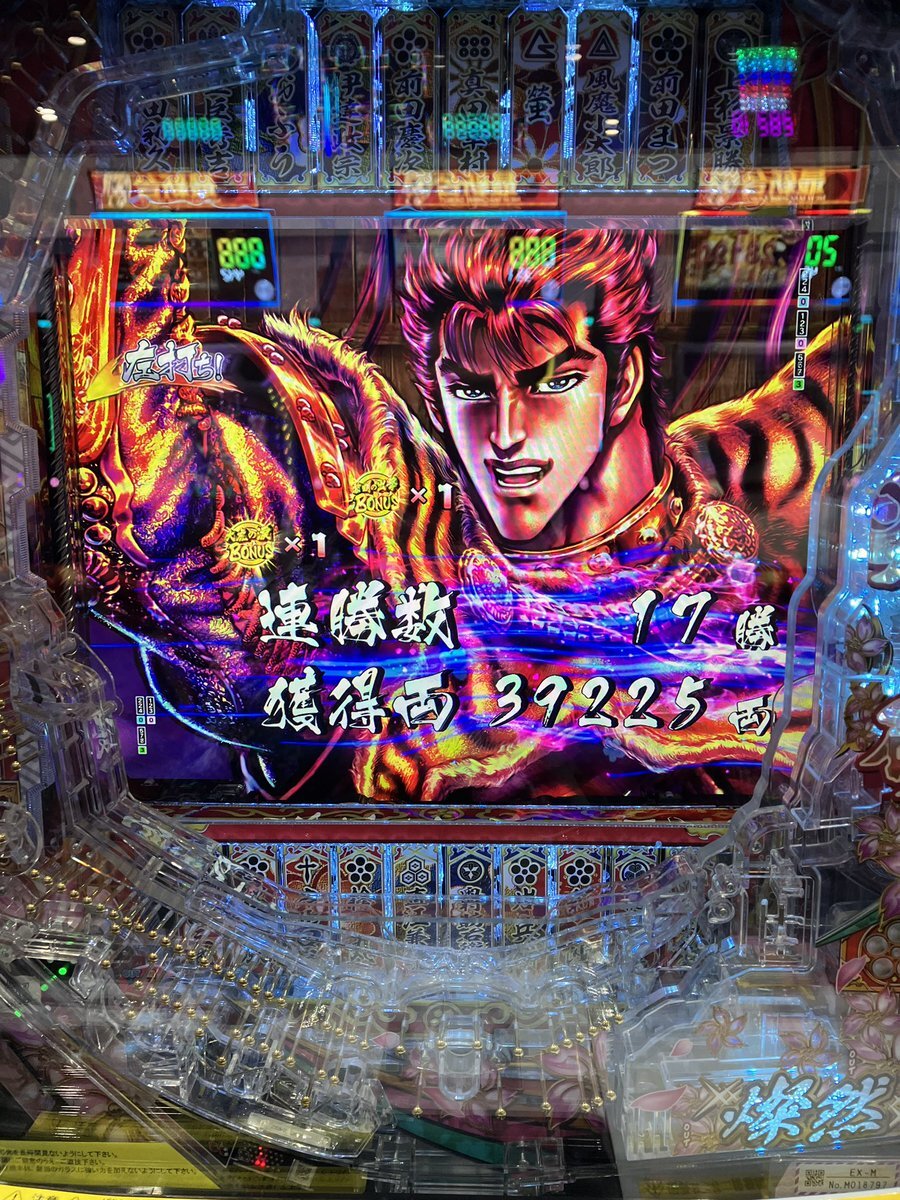 個人的に黄金一閃から傾奇一転までイマイチやったけど黄金の一撃は演出出玉遊びやすさほんといいわ。ニューギンの気合いを感じた。あとはホール次第。 #花の慶次~黄金の一撃 pic.x.com/xjkHWSlQ1a