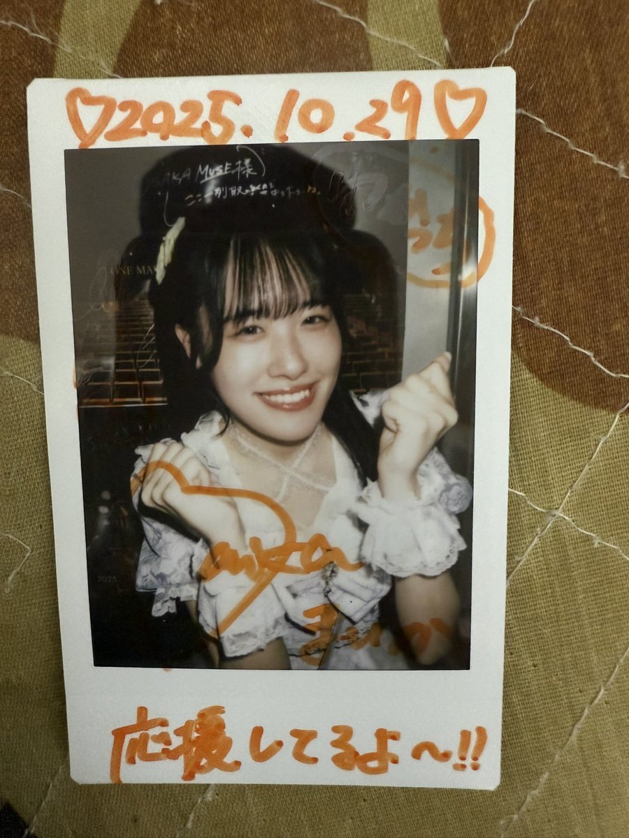 2025.10.29 +Alpha 花咲舞果(M.HANASAKI)さん OSAKA MUSE 寝違えたらしくライブも少し支障があるらしい😅 お互い気を付けようw 早く体調も本調子まで戻すからね💦 それまでしばらくお休みします🙏 買ったの見せてないからいちよう🤣 守備手と日本シリーズグッズ #花咲舞果 #まいか見守り隊 pic.x.com/bjahRt8tEu