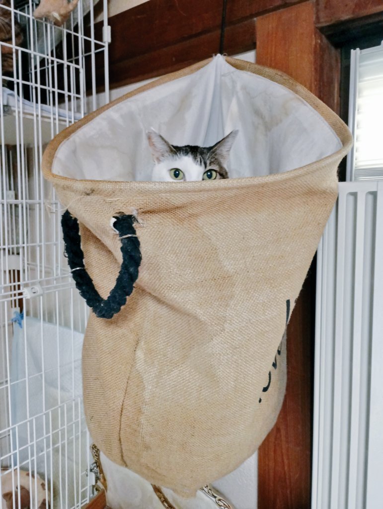 ぴーちゃん、そこは洗濯物入れなんですけどね。 キミも洗っちゃって良いんですかね? そんなぴーちゃん、今日は大騒ぎで最初で最後の譲渡会参加頑張ってきました💦 #保護猫シェルターゆうなぎ #花小金井 pic.x.com/V2wuN5w2ql