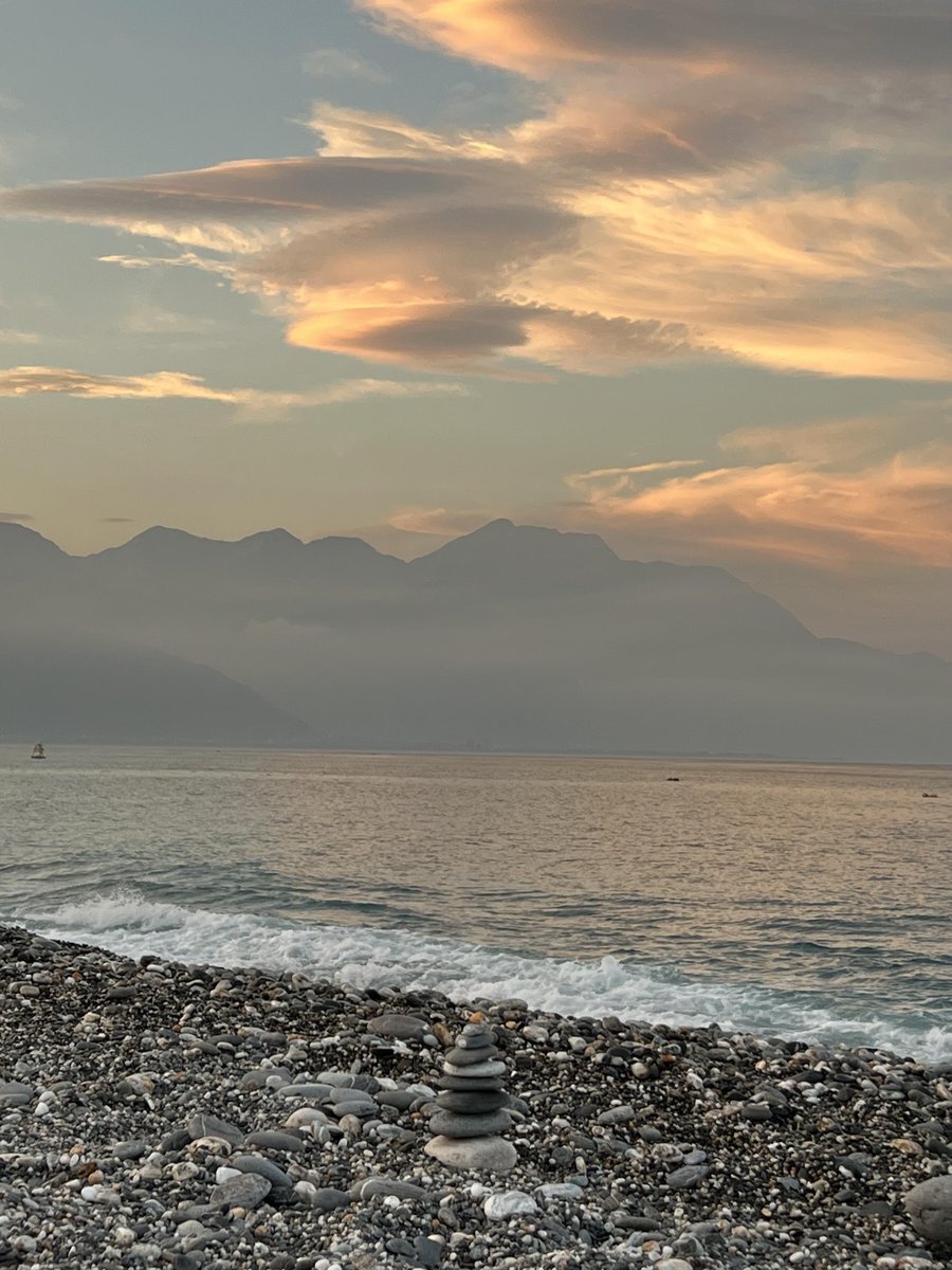 波が小石を撫でて 風は夕焼けの香り🌊 何も考えずに ただ空の色が変わるのを見ていた #花蓮の海 #夕方の時間 #静かな美しさ #台湾の風景 pic.x.com/tofx4meLLY