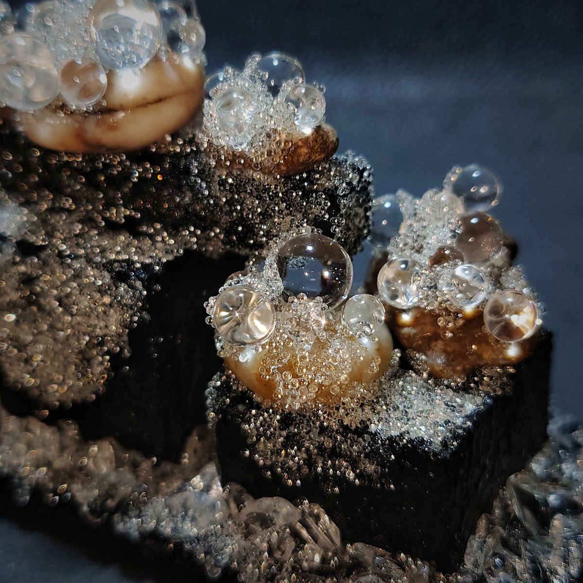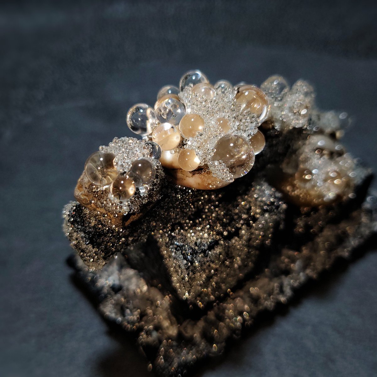 #芸術の秋ということで作品あげてるアカウントフォローしませんか 小さな石に生えた球体たち こぼれ落ちそうなぐらい数を増やしながらきらきらと輝いています 𓈒𓏸 pic.x.com/ximqiwF1OS