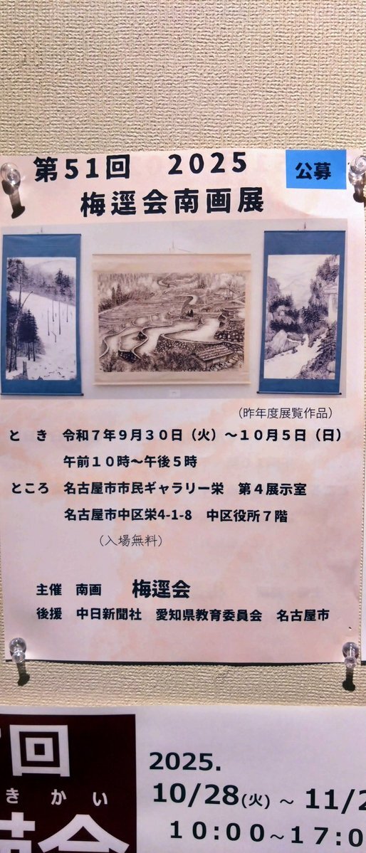 本日名古屋市民ギャラリー栄の7階第4展示室にて教室の展示会を行っています。 本日最終日16:30まで行なっておりますのでぜひお立ち寄りください! もちろん入場無料です。 非日常を味わえるかもしれません #名古屋 # #水墨画 #芸術 #芸術の秋ということで作品あげてるアカウントフォローしませんか pic.x.com/nF0VTctJ9f