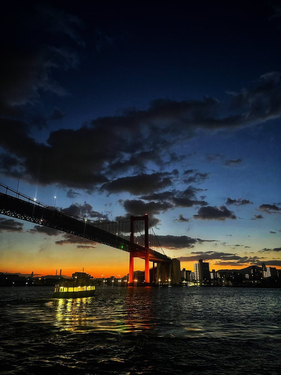 いつも同じ構図だとご指摘もらうことがあるのですが、私は渡船の航跡と若戸大橋が映るこの構図が好きで😅 いつも同じところからすみません🤣