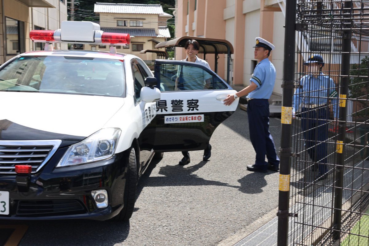 海南警察署の1日警察署長さま🙏 子どもの可愛い質問に笑顔になったり、 オープンカーの前で記念撮影したり、 きっと人生初のであろう、🚓乗車したりしてました🫶 #若林宏樹 pic.x.com/tgV4jpDGK8