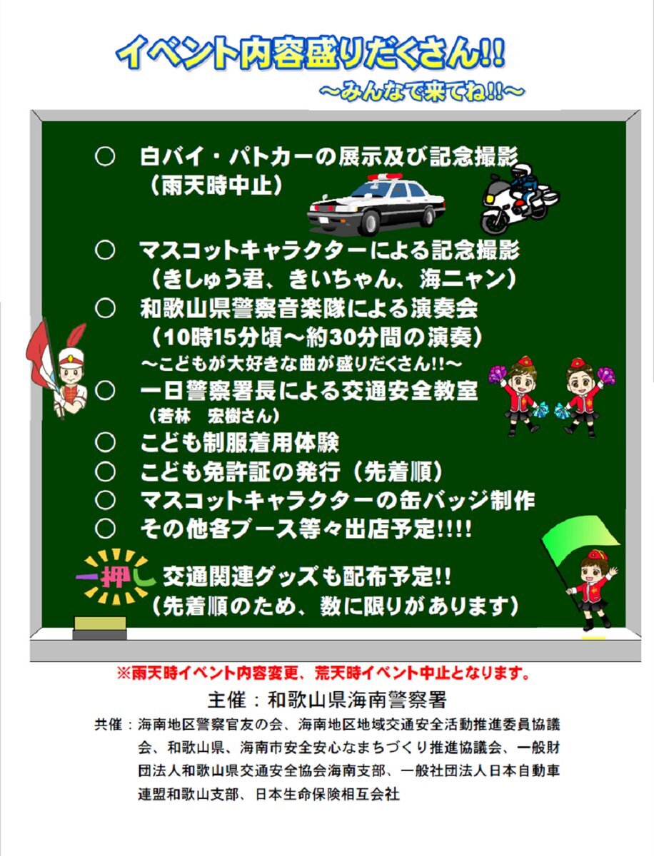 【海南警察署】 9月21日(日)に海南市民交流センターにて今年の箱根駅伝で大活躍した若林宏樹氏を招き、交通安全啓発イベントを実施します。 皆さんお誘いのうえ、どうぞお越しください。 ※荒天時は中止となる場合があります。 #和歌山県警 #海南警察署 #若林宏樹 pic.x.com/kICAJxWpck