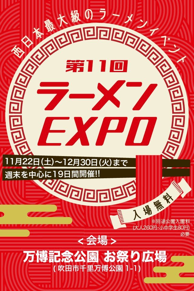 今年は19日間やでー! 1幕:11月22日(土)〜24日(月・祝) 2幕:11月28日(金)〜11月30日(日) 3幕:12月5日(金)〜7日(日) 4幕:12月12日(金)〜14日(日) 5幕:12月19日(金)〜21日(日) 6幕:12月27日(土)〜30日(火) ※11/22は花火大会のため時間短縮 #ラーメンEXPO