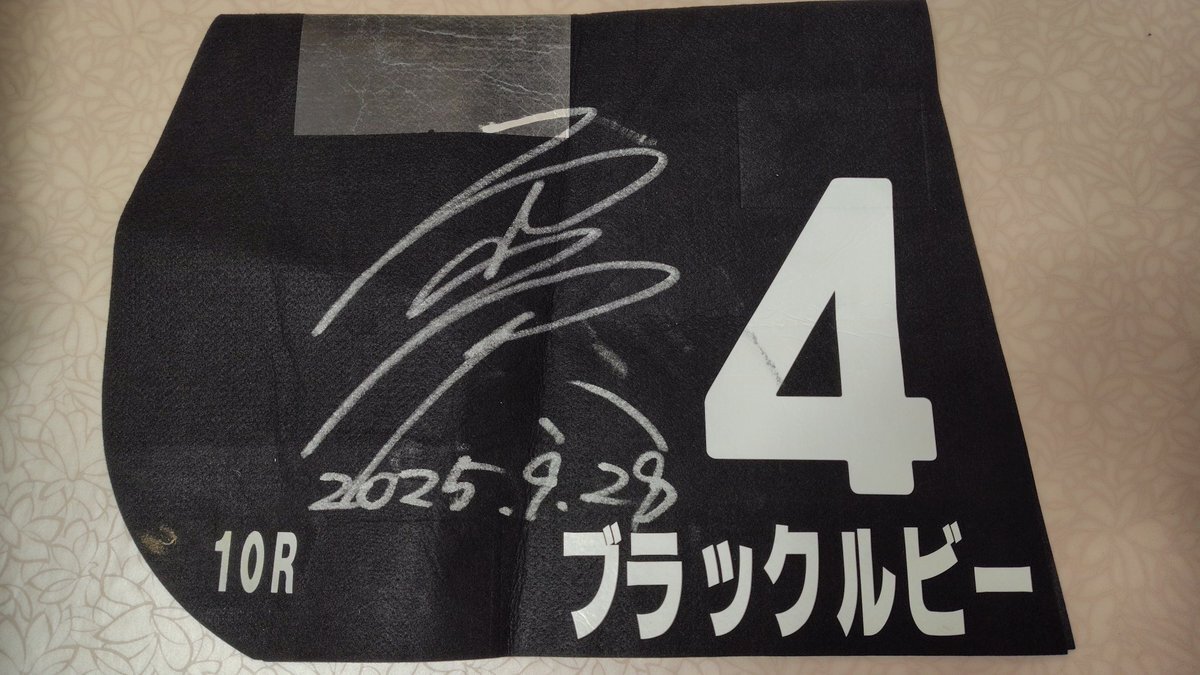相方のRionさんが戸崎圭太騎手のサイン入りゼッケンをまさかの当選した!! #戸崎圭太 騎手 #戸崎圭太騎手 #ブラックルビー #TNレーシング #茨城新聞杯 #田中博康 厩舎 #ゼッケン pic.x.com/1mqmi1iGR1