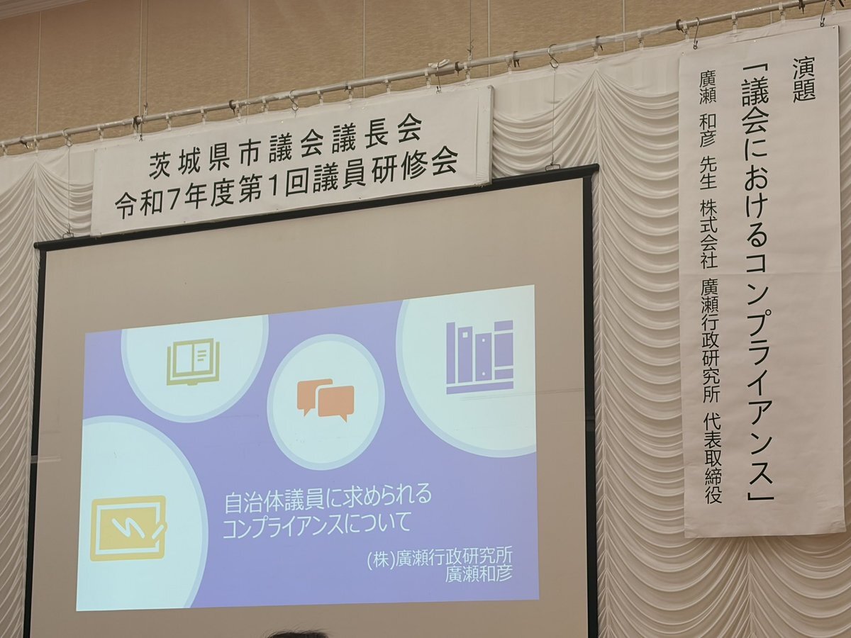 11月14日(金)。茨城県市議会議長会「議会におけるコンプライアンス」講師:廣瀬和彦先生 に参加させていただきました。 #茨城県市議会議長会 #コンプライアンス #取手市 #岡口 #取手市議会議員 #廣瀬和彦 #廣瀬行政研究所 #ほどよく絶妙とりで pic.x.com/sfLBrVmsmH