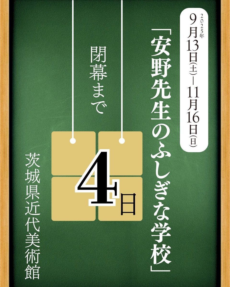【いよいよ本日閉校です】 たくさんの方にお楽しみいただいた企画展「#安野先生のふしぎな学校」もいよいよ本日最終日です。安野先生の最後の授業、ぜひ受けに来てください😃皆様のご来館、心よりお待ちしております📐 📍#茨城県近代美術館 pic.x.com/DVUnnlUwKw