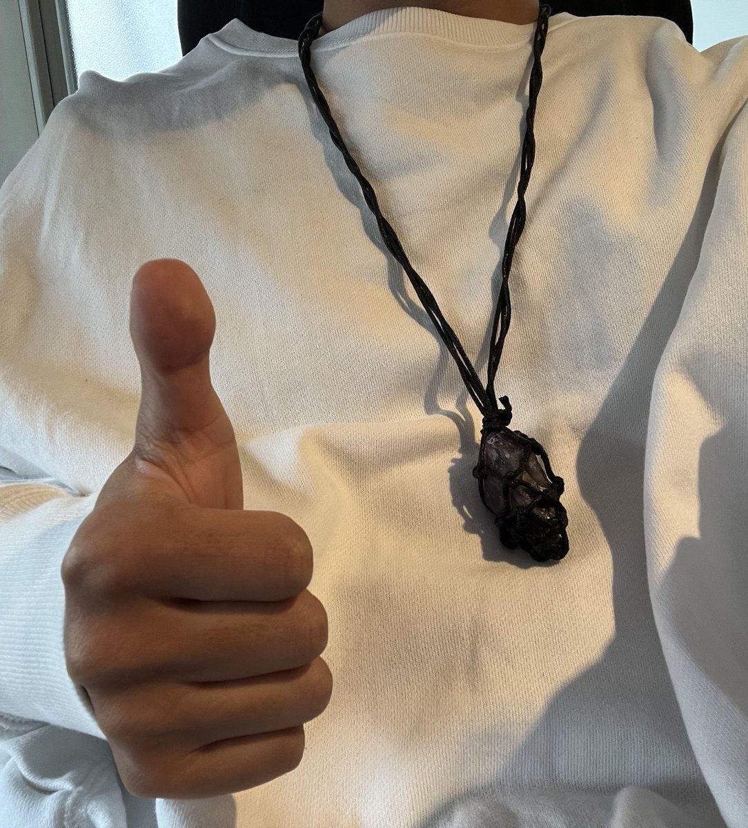 #茨大は超次元 もらったエイリア石でペンダントを作りました。 自認がcv梶裕貴のモヒカンベンチウォーマーになったので、これから毎日キラースライドで登校しようと思います。ありがとう。 pic.x.com/49RiAdeD10