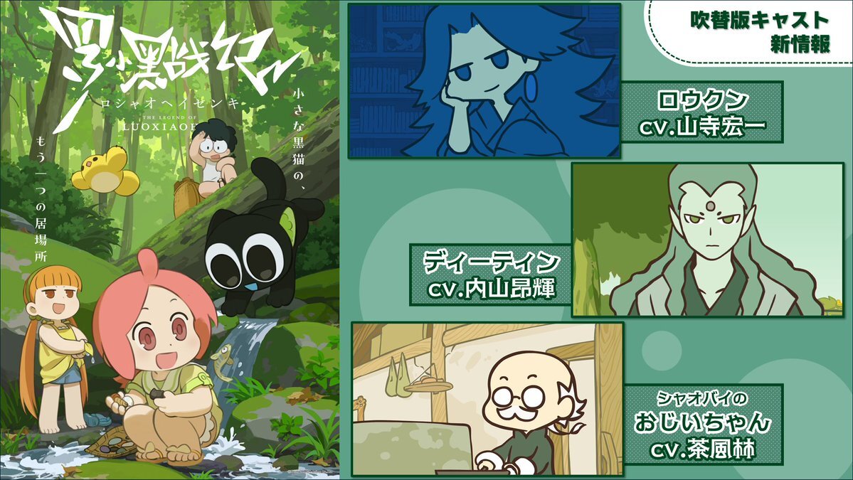 ┏┈┈•┈┈ꕤ┈┈•┈┈┓ TVアニメ「#羅小黒戦記」 🍀追加キャスト解禁🍀 ┗┈┈•┈┈ꕤ┈┈•┈┈┛ 🔷𝐍𝐄𝐖 𝐂𝐀𝐒𝐓 ▸#山寺宏一 (ロウクン 役) ▸#内山昂輝 (ディーティン 役) ▸#茶風林 (おじいちゃん 役) luoxiaohei-movie.com/tv/character/ #ロシャオヘイセンキ pic.x.com/7uQSmlMig2