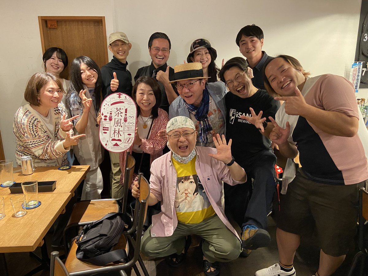 チャップ(茶風林)さんが、ほうじ茶入りオリジナルビールを販売したとのことで、伺いました。イギリスのビールがベースなのだそうで、泡がなく、度数も軽く、香りも良し!🥂 酒が弱い富士でも、楽しく飲めました😊 6年前にボイサン収録して以来のうっちゃん(うのちひろ:写真左)とも会えました🥳
