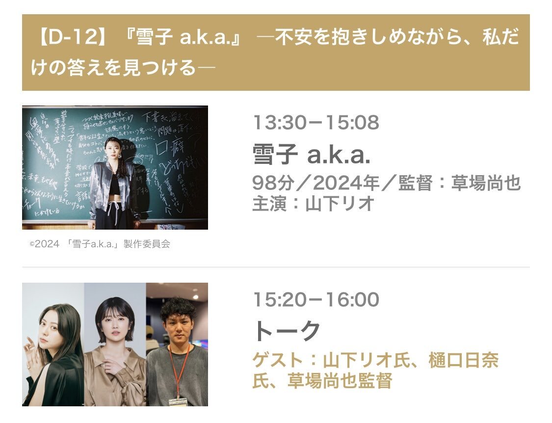 #TAMA映画祭 でも上映する『雪子 a.k.a.』の #草場尚也 監督が #新藤兼人賞 に最終ノミネート!!✨ おめでとうございます🎉🎉🎉 草場監督と #山下リオ さんと #樋口日奈 さんが登壇するトークイベントつきの上映は11/23[日]ベルブホールにて!! 🎫チケットは購入はこちらから👇 x.com/yukiko_aka_/st…