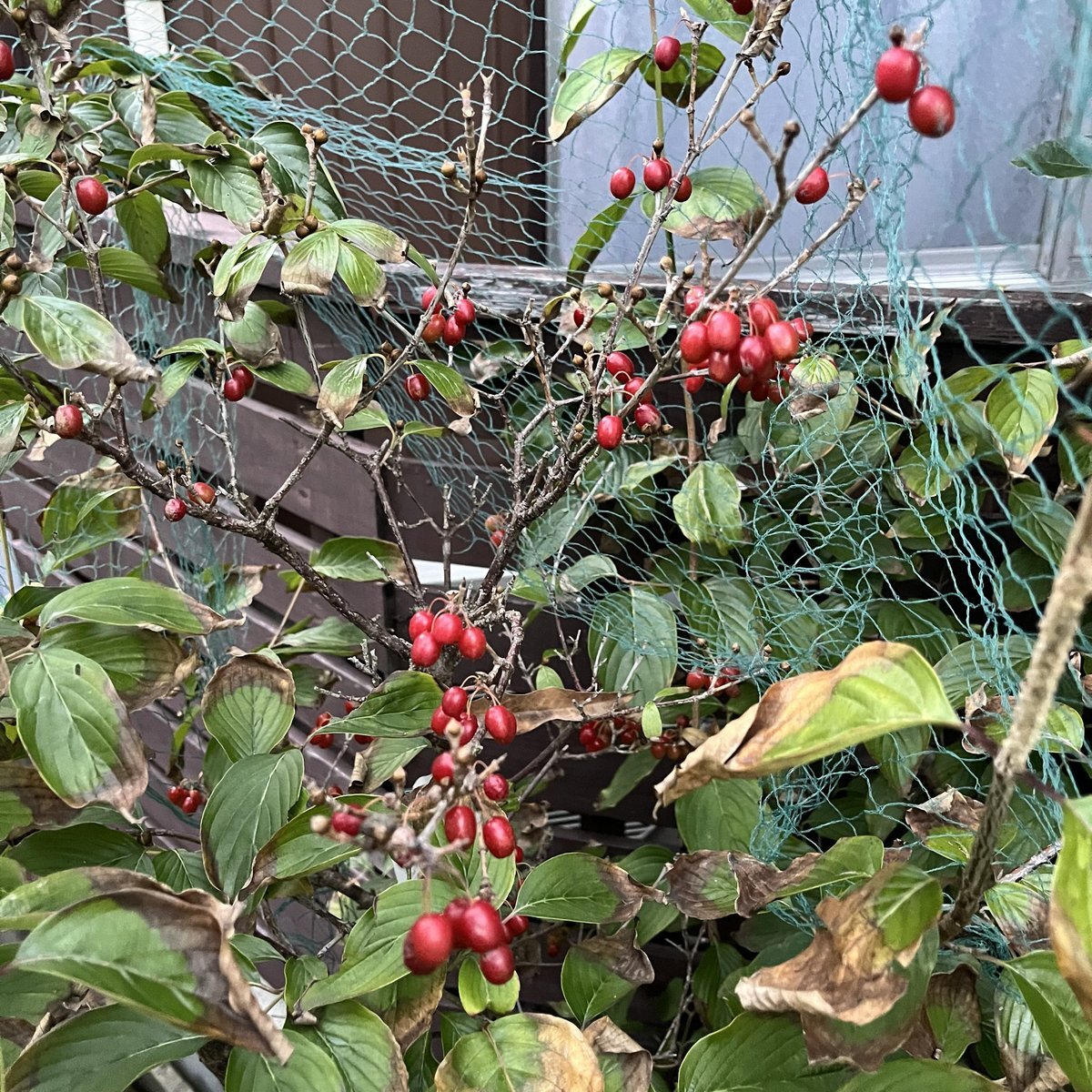 お早うございます!染めジイです。我が家のサンシュユの実がやっと赤くなりました。枝葉で草木染も出来ますが、今年は採って生薬・山茱萸になるか試します。酸味が強く、八味地黄丸・牛車腎気丸に入り、滋養強壮・収斂で高齢者の尿漏れにも役立ちます。薬色同源(^-^) #草木染 #生薬 pic.x.com/bWlRVLIOdo