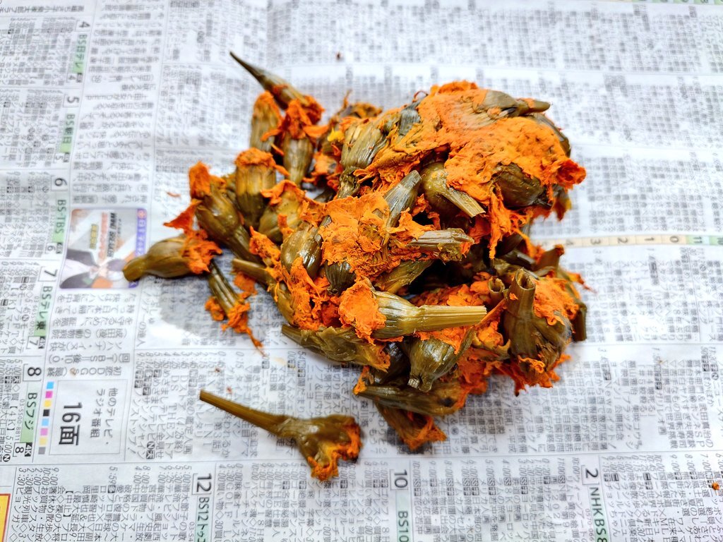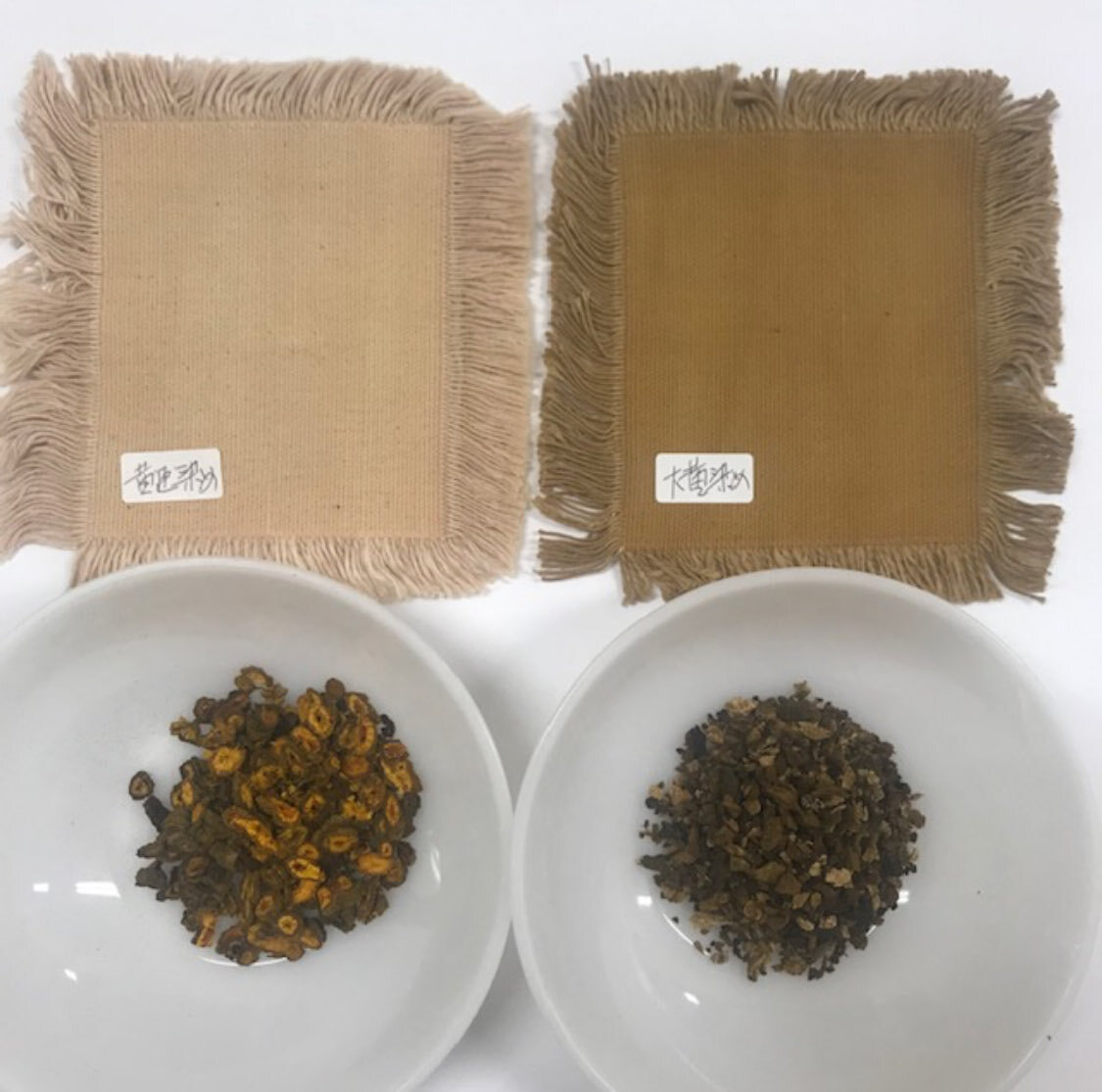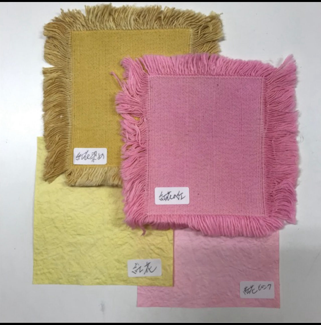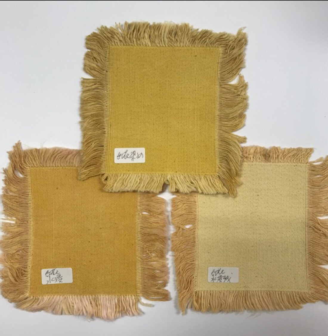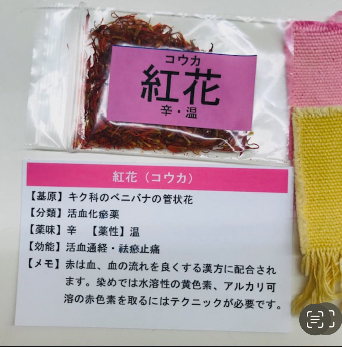 お早うございます!染めジイです。私の生薬染めは、木綿のコースターを染めるところから始まりました。紅花には黄と赤色の色素があり、煎じ薬で煮出した時、水で抽出した時、残ったかすの色は・・いろいろと試してみましたが、黄色色素しか取れません(^ ^;;薬色同源(^-^) #草木染 #生薬 pic.x.com/8GP57W2EaI