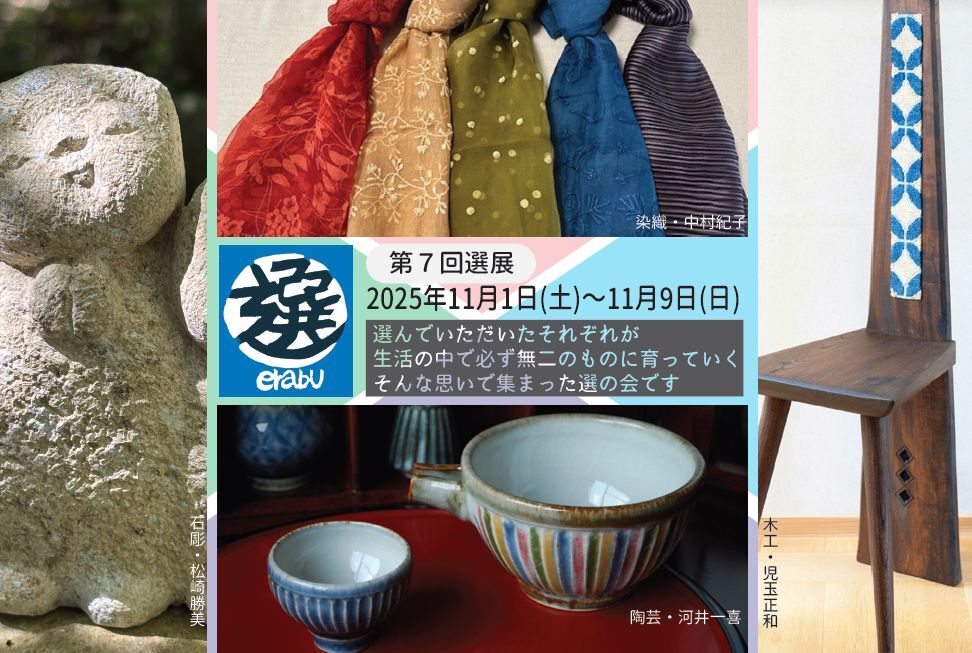 第7回選展、2日目始まりました。 どうぞお立ち寄り下さい。 草木染の作品は、和装小物の他にウールのストールやスカーフなどもあります。 #石彫 #松崎勝美 #木工 #児玉正和 #陶芸 #河井一喜 #染織 #草木染 #中村紀子 pic.x.com/noTZfp9suJ
