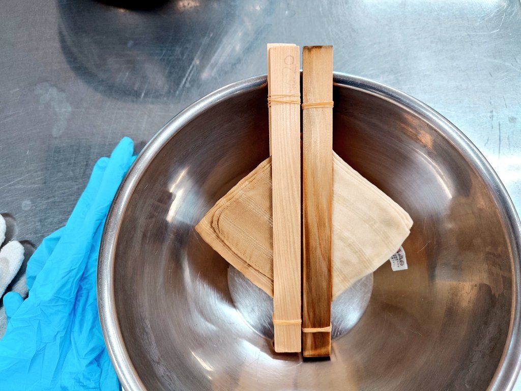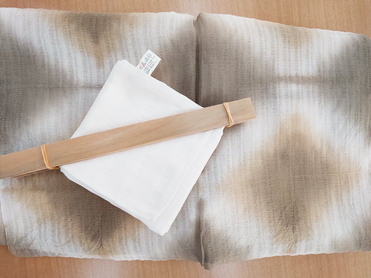 割り箸や板で締めて意図したとおりに5層の色が出たので仕上がりにはとても満足している。講師先生から丁寧な仕事ぶりを評価されたので素直に嬉しかった。#草木染 #マリーゴールド #板締め pic.x.com/hoz2ZPoRF6