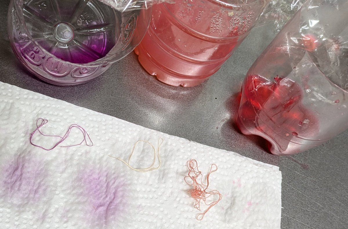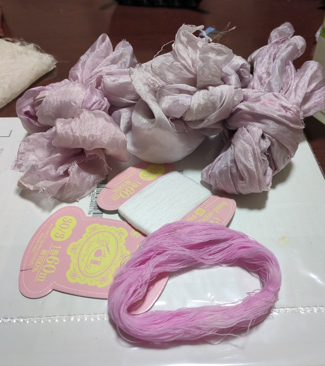 左から先日の柳葉ルイラ草と、薔薇(ピンク)、薔薇(赤)で試し染めした結果。 これは火を使わないから手軽にできるし良い色に染まったなぁ😍 残念ながらピンクは染まらなかった。美味しそうな色といい香りなんだけどな(笑) #今日の手仕事 #草木染 pic.x.com/B9d6Pfmkip
