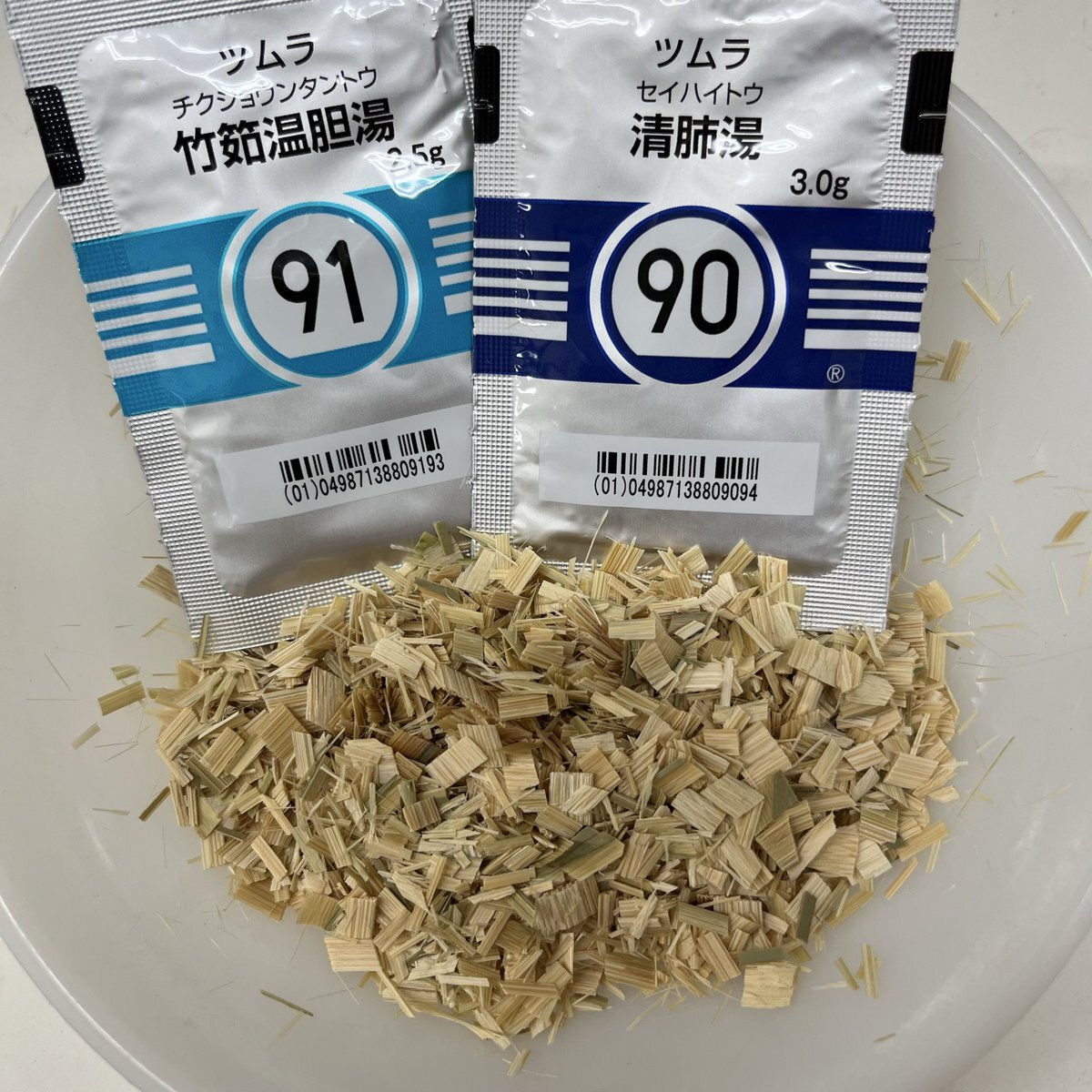 お早うございます!岡山漢方の講義テーマが"竹筎"。竹の皮下の白い部位をそいだのが竹筎(ちくじょ)で、咳止めとして活躍の竹筎温胆湯と清肺湯に配合されます。竹葉もクスリでかぜ治療に欠かせない銀翹散(ぎんぎょうさん)に配合されます。竹はこれから大事です。薬色同源(^-^) #草木染 #生薬 pic.x.com/jkYJjnUTDS