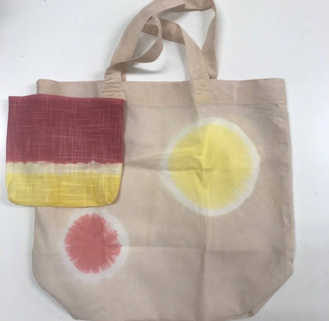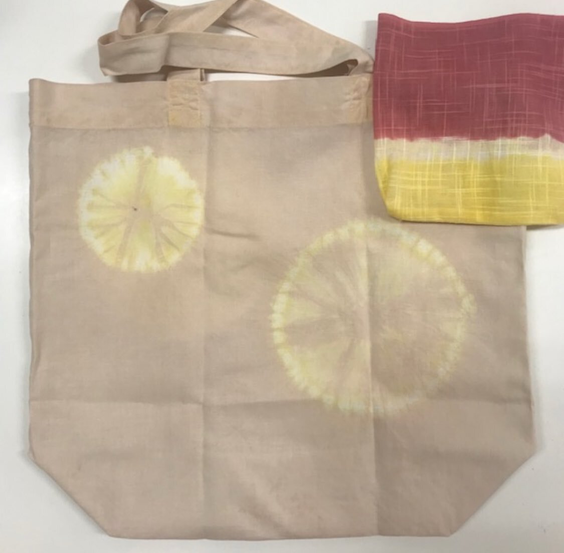 お早うございます!染めジイです。私の生薬染め、コースターの次はエコパック。 はじめて絞りに挑戦してみました。丸く色を染めるより絞りは意外と簡単ですが、出来上がりを想定しての絞りは少し難しいですね。藍染などはっきりした色の方が、絞りには適します。薬色同源(^-^) #草木染 #生薬 pic.x.com/DOGjQMicwR