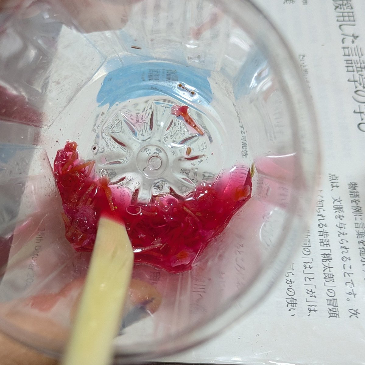お早うございます!染めジイです。私の生薬染めは、木綿のコースターを染めるところから始まりました。紅花から赤の色素を取るには、黄色を除いた後にアルカリ(重曹)水で赤を抽出しアルミ媒染で染めていきますが、どうやってもピンクにしか染まりません(^ ^;;薬色同源(^-^) #草木染 #生薬 pic.x.com/XL7uVou3tM