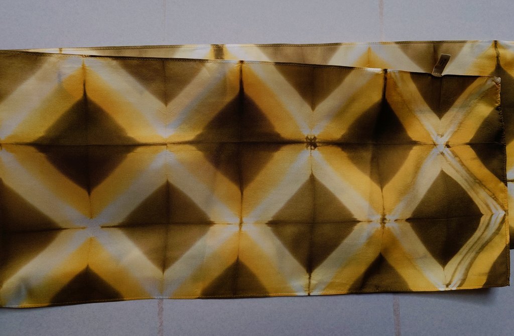 珈琲で染めたストールは期待どおりに出来上がる。板を重ねた部分も上手くいった。次は割り箸のような細いものを使うとどうだろう‥イメージが広がる。紅茶でも緑茶でも出来そうで楽しい。11月はマリーゴールド。#日本絹の里 #草木染 #珈琲 pic.x.com/YrLUdfBzET