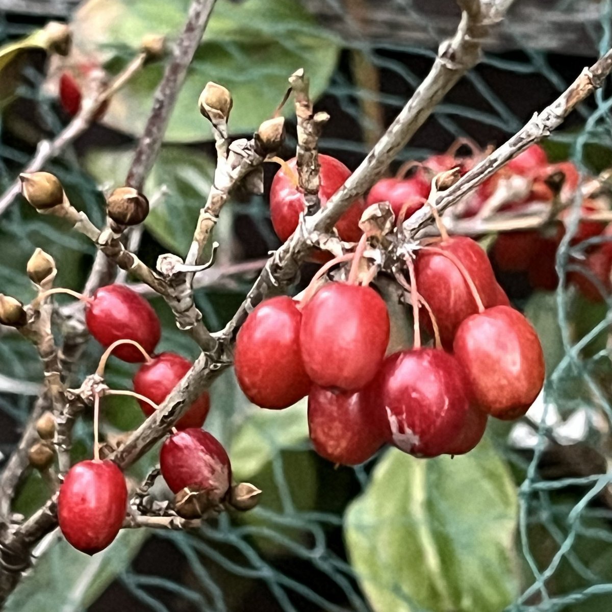 お早うございます!庭のクコの実も赤くなり始めています。9月10月の薬草カレンダーは枸杞ですが、こんなに見事な実は付けてくれません(^ ^;;まだ花が咲いているところもあります。牧野富太郎博士は「長生きしたければ枸杞を食え」と書いて自室に掲げていました。薬色同源(^-^) #草木染 #生薬 pic.x.com/O3ByyAANHo