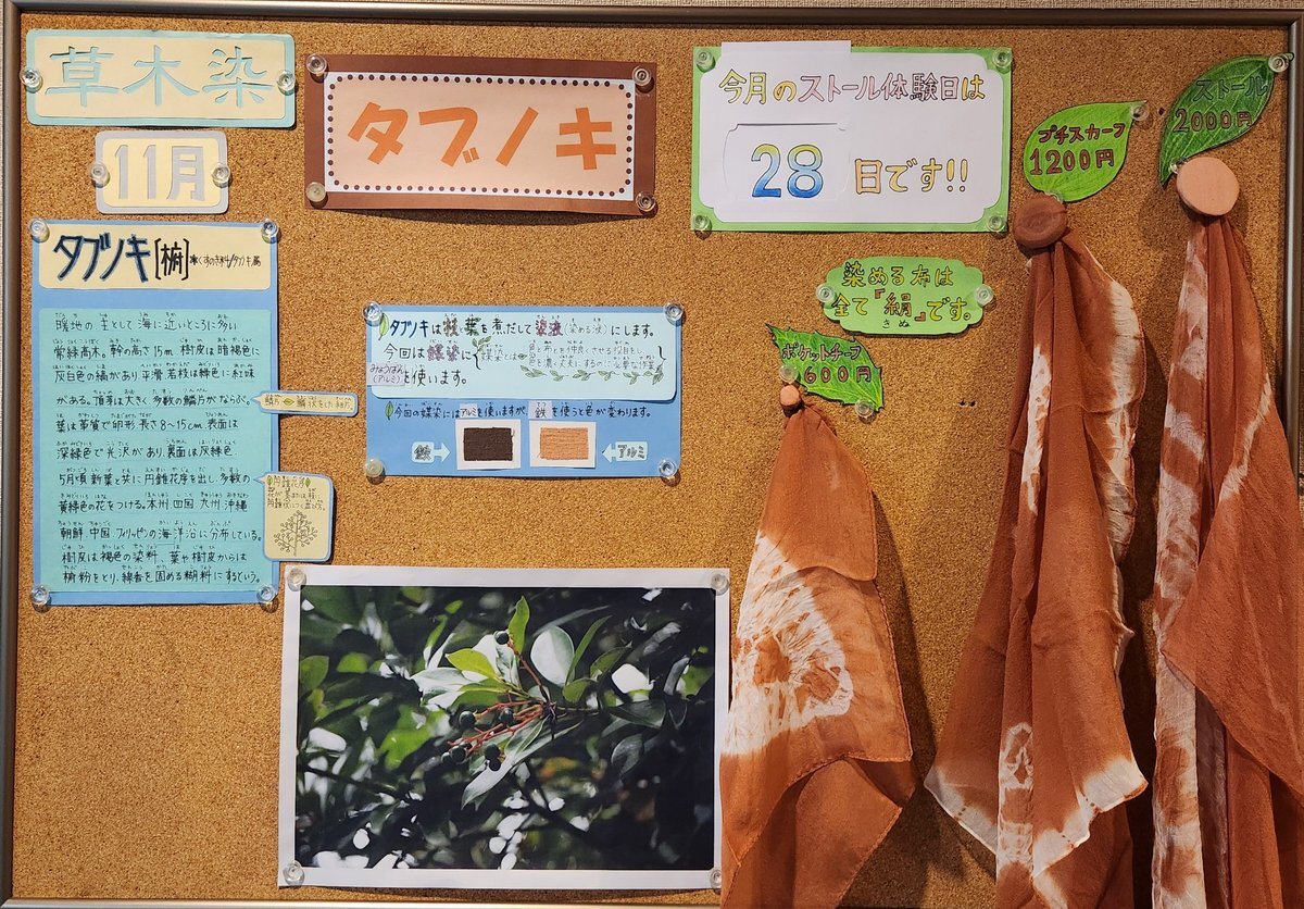 【染色体験・草木染】11月16日(日)は、草木染(プチスカーフ、ポケットチーフ)の染色体験日です。タブノキのアルミ媒染で赤っぽい橙色を染めます。ご希望の方は、本日中に染料植物園に電話にてお申込みください。開始時間は、午後1時からです。#染料植物園 #染色体験 #草木染 pic.x.com/P6olbSM8G4