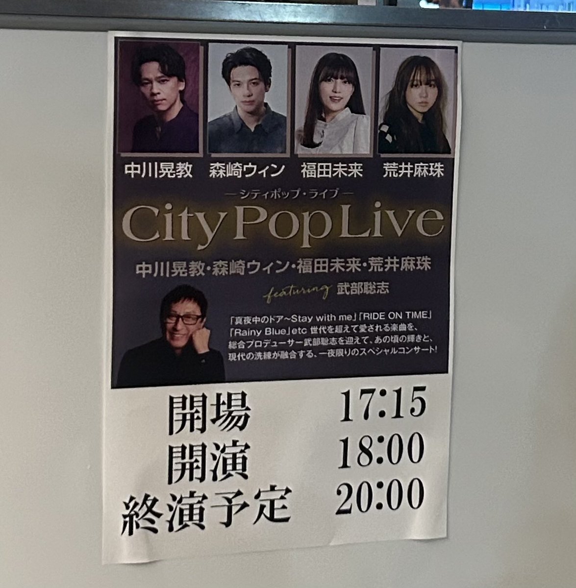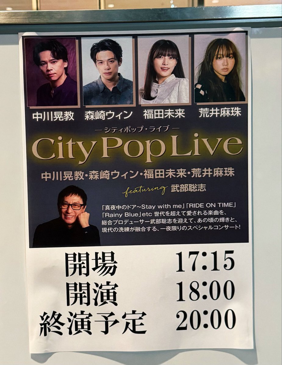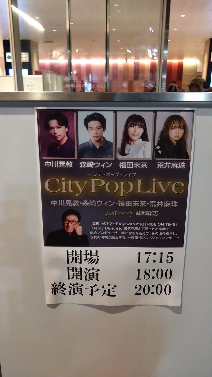 #CityPopLive #武部聡志 #中川晃教 #森崎ウィン #福田未来 #荒井麻珠 歌って最高!ボーカリスト方々の歌唱聞き惚れてしまうし、イントロからもうわくわくでした!次は何歌ってくれるんだろうと楽しかった✨多幸感いっぱいで帰ってきたよ。ウィンくんが強い気持ち・強い愛歌った〰渋谷と言えばソング〰 x.com/aiesu_19711208…