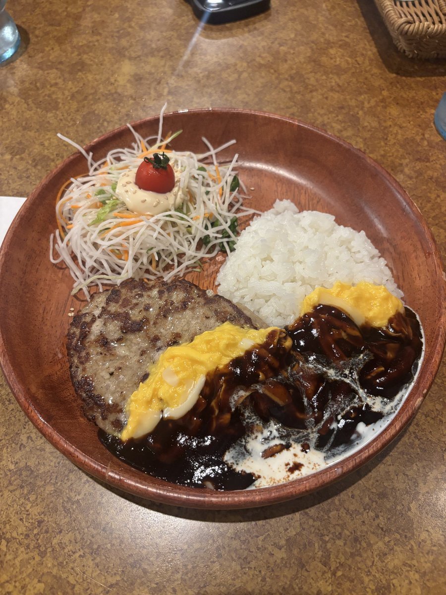 この間麻珠ちゃんがおすすめしてたオムバーグたべたよ〜!!!めちゃめちゃ美味しかった!!!!新しいものに出会わせてくれてありがとう^_^ @maju_arai #荒井麻珠 pic.x.com/r71mLAreKo