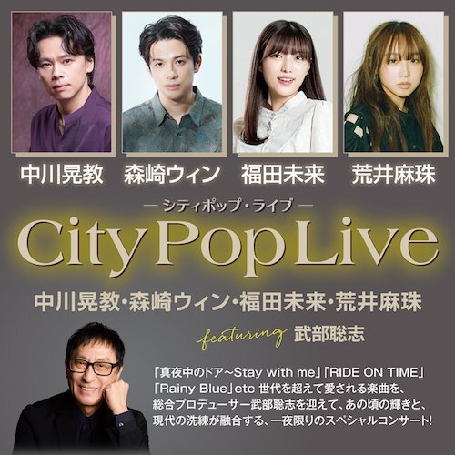 #CityPopLive 🌃 とっても楽しいライブでした🎉 中川さんと武部さんお二人での瑠璃色の🌏で涙があふれて😭 会場もあたたかくてやさしい穏やかな空気に満ちあふれた感じがして… 今思い出してもグッときてます🥺 #武部聡志 さま #中川晃教 さん #森崎ウィン さん #福田未来 さん #荒井麻珠 さん 👏👏👏 pic.x.com/VXqOrGCO1r