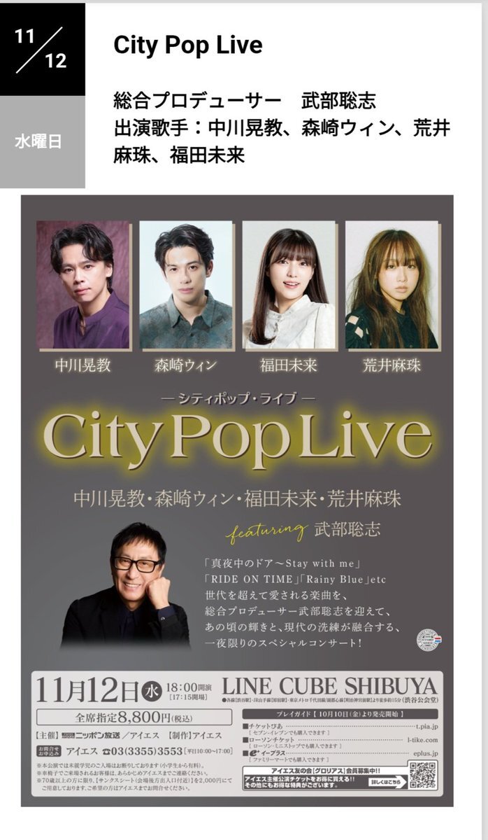 今日はこちらを観劇 City Pop Live あらためて、武部さんってすごい #中川晃教 #森崎ウィン #荒井麻珠 #福田未来 featuring #武部聡志 share.google/lxaBXifwcl0rDp… pic.x.com/xq1Fctvd1b